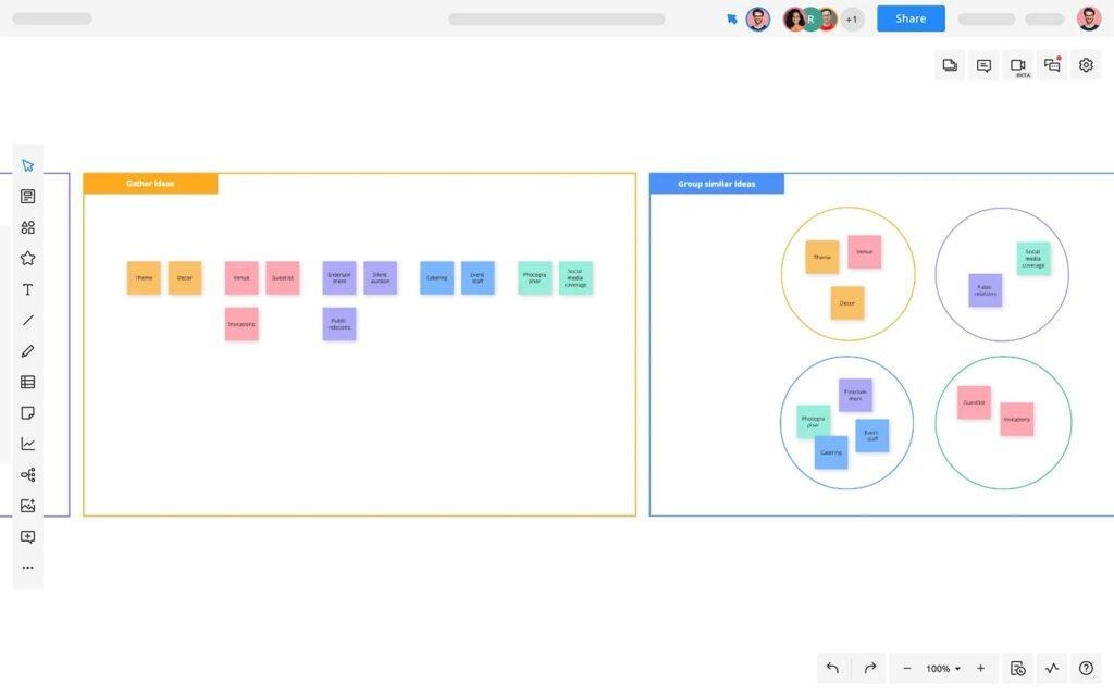 Top tip: If you’re running a virtual brainstorming session, use a cloud-based tool, like Google Docs or an online diagramming tool so everyone can log in and add ideas at the same time.